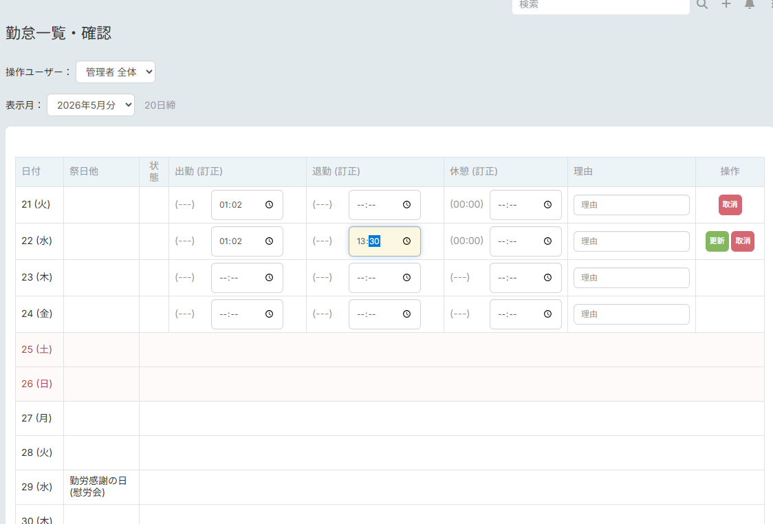そんな背景から、EspoCRM上で勤怠管理を自作しました。